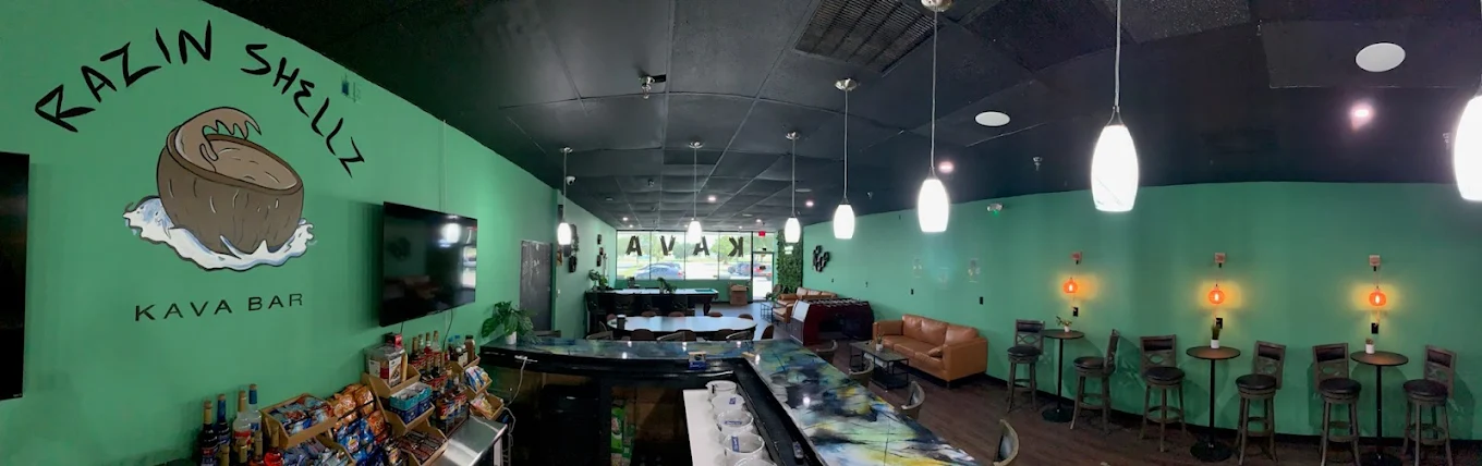 Razin Shellz Kava Bar is a late-night kava and tea lounge in Melbourne, FL, best known for its vibrant community, welcoming staff, and unbeatable hours (open until 2 AM every night). A go-to “third place” for locals, it blends relaxing vibes with high-quality kava and kratom, daily drink specials, and a rotating calendar of events like poker, trivia, and paint nights.
