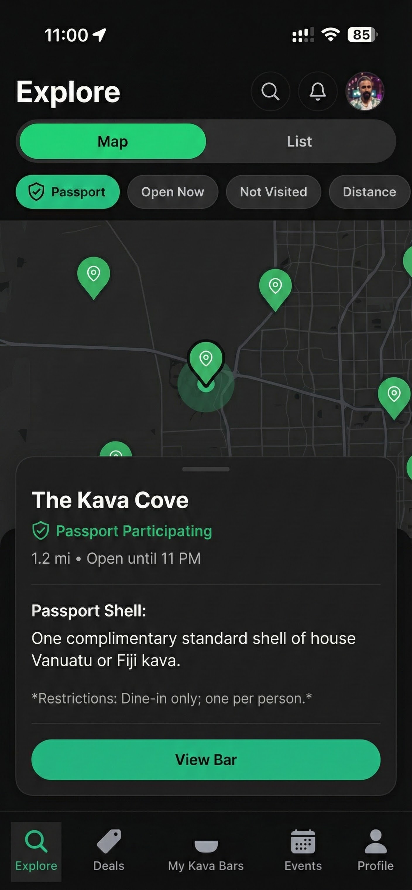 The HappyKava Passport is designed for one thing: turning curiosity into an actual visit. Guests explore participating bars in HappyKava, visit your location, and redeem digitally through Kavatender Mode.